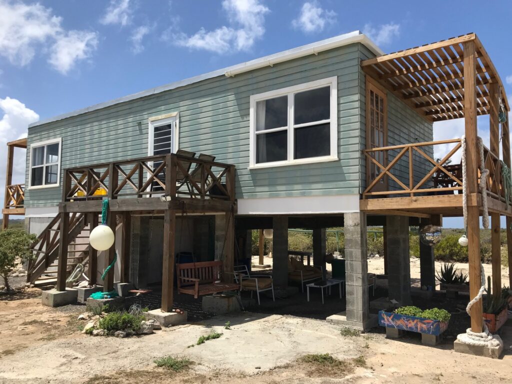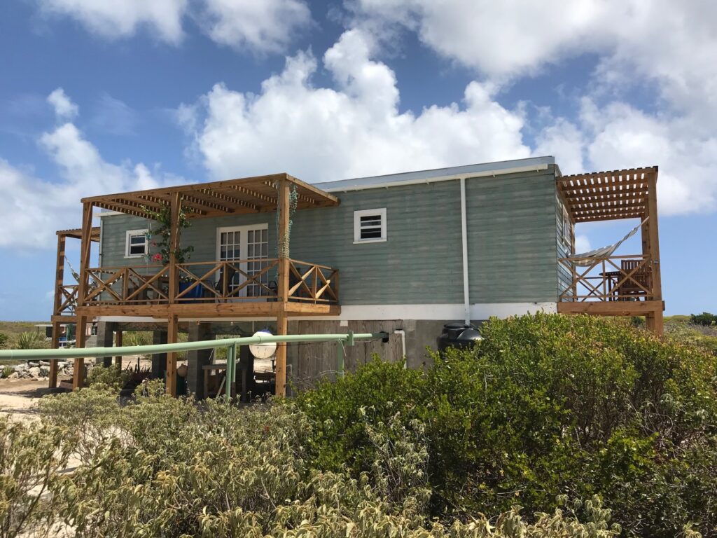 Frangipani Eco-Lodge is a stylish two-bedroom guest house sharing the same beautiful Atlantic beach as Frangipani Cabana. It’s locally-owned and fully solar powered, with two large en-suite bedrooms, a kitchen diner and an outdoor gallery space on each side with great views of the north-east Barbudan coastline, spanning Two Foot Bay to Fishing Creek. The sea beyond the reef is exhilarating with crashing waves, but inside the reef you can swim in much calmer water and enjoy the natural world right there. You will be swimming among diving pelicans and other sea birds, and snorkelling with ocean creatures such as rays. It’s incredibly beautiful and although you will mostly have this long, natural beach all to yourselves, you may also meet your Cabana neighbours or local fishers, hear a deer hunter or just make friends with a wild donkey.