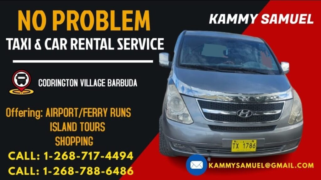 With his extensive island knowledge, Kammy can help you navigate Barbuda and make the most of your trip in a variety of vehicles including air-conditioned 11 seater and 14 seater buses. Reach out to him on whatsapp or by calling (268) 717 4494 or (268) 788 6486 or email kammysamuel@gmail.com to book your ride.